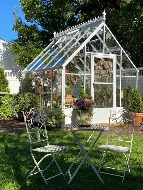 Laura, from How’s it Growing, purchased our Parkside greenhouse and received it in July of 2021. It has become one of her beloved additions to her beautiful garden in New Jersey. Later that year Laura added a custom overhang over her gable door for a unique look.
