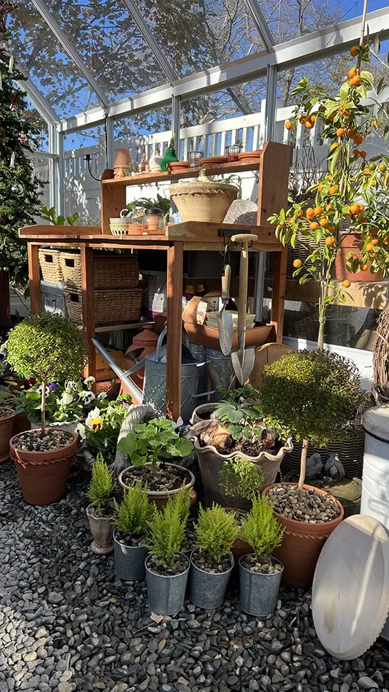 Laura uses the greenhouses in various ways – for extending her garden, for additional living space and has even added some more heat loving plants such as citrus and amaryllis for winter blooming!