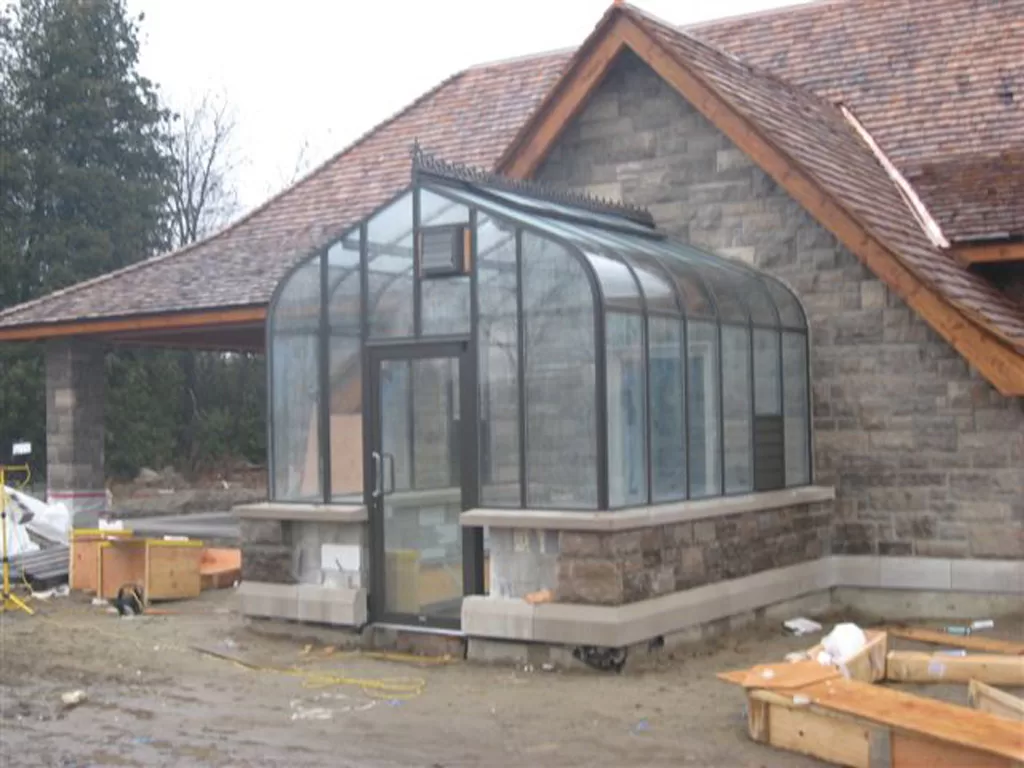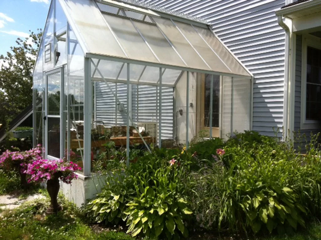 A gable attached residential greenhouse should have some consideration given to available sunlight, ventilation and temperate control in your sunrooms. In addition, the available height of the attached wall will dictate the height and size of the home greenhouse. Generally speaking, the wider the sunroom, the higher the supporting wall must be. Other considerations would be the optimum location of windows and doors for adequate temperature control. Lastly, some thought should be given to how snow or rain will slide off of the roof onto to the residential greenhouse depending on your climate.