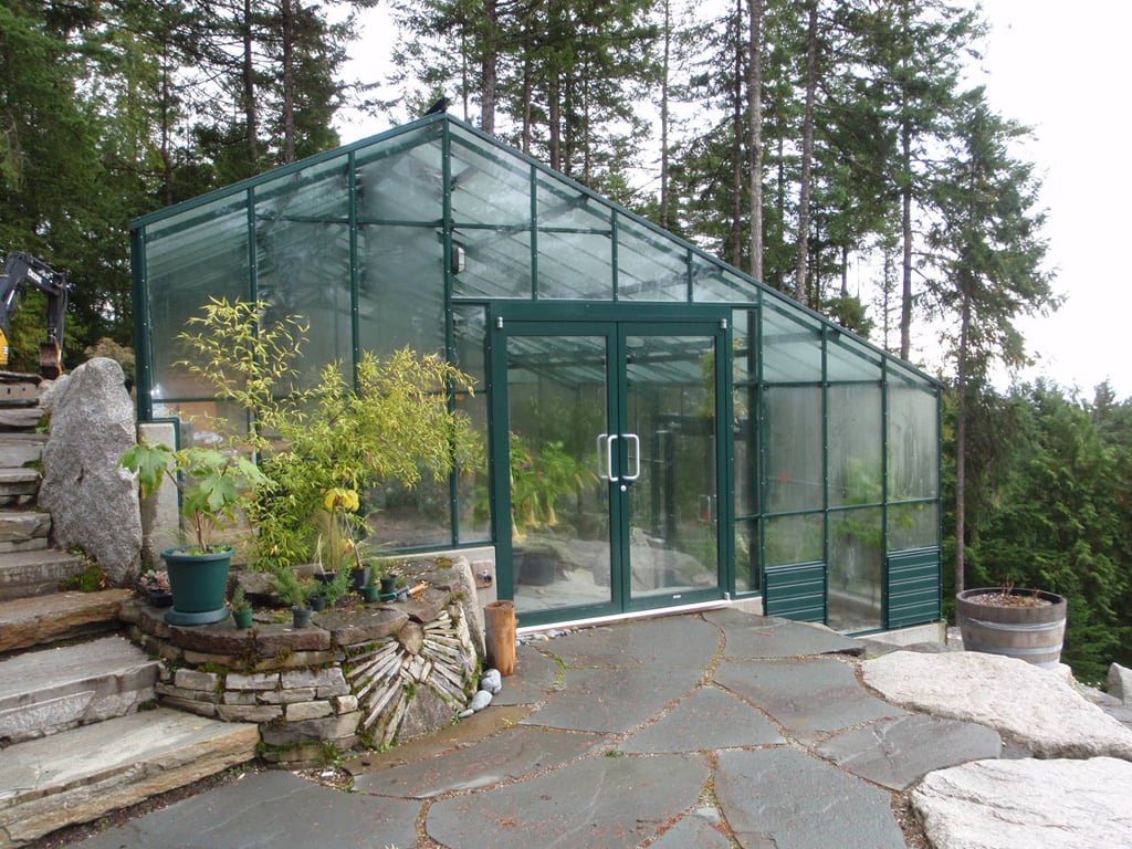 BC Greenhouse Builders provides the greenhouse design and foundation specifications. Foundations are typically built by a local contractor familiar with permitting and site conditions.